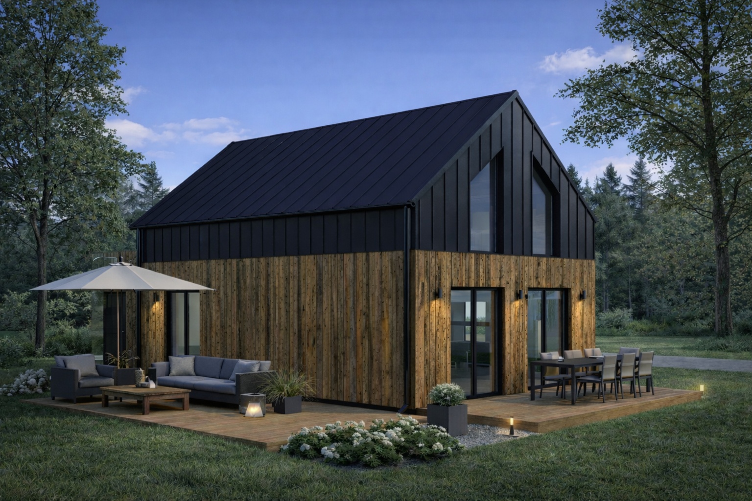 Model ST-2 to całoroczny dom modułowy, który łączy nowoczesną estetykę, energooszczędne rozwiązania i szybki czas realizacji. Sprawdzi się zarówno jako główne miejsce zamieszkania, jak i komfortowy dom pod miastem lub na obrzeżach terenów zielonych.