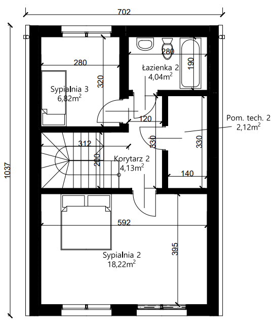 Tak – układ ścian działowych i instalacji można dopasować do własnych potrzeb.
